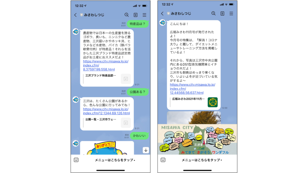 ヘプタゴンでは、AWS の生成 AI サービスである Amazon Bedrock を用いたチャットボットアプリケーションを、青森県三沢市様に提供しております。三沢市への移住定住に興味のある方へ向けて、三沢市についての質問を LINE 上で AI が回答してくれる仕組みを Amazon Bedrock を使って実装しています。