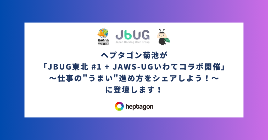 この度、当社ビジネスデベロップメントの菊池が、2024年10月19日開催「JBUG東北 #1 + JAWS-UGいわて コラボ開催 仕事の “うまい” 進め方をシェアしよう!」へ登壇することをお知らせします。