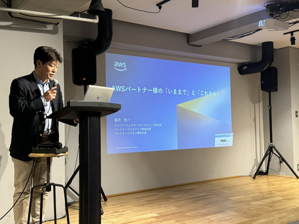 また、ゲストにアマゾン ウェブ サービス ジャパン合同会社 福沢 亮一様をお招きし、日本における AWS のクラウドビジネスの変遷とAWSパートナーの役割をお話いただきました。