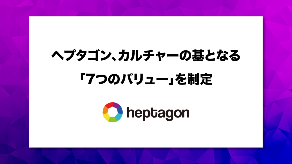 ヘプタゴンではこの度、カルチャーの元となる「7つのバリュー」を制定いたしました。「ヘプタゴンはどんなチームであり続けたいか」について議論を重ね、社員と組織が共に成長する “あるべき姿” や “価値観” を言語化しています。
