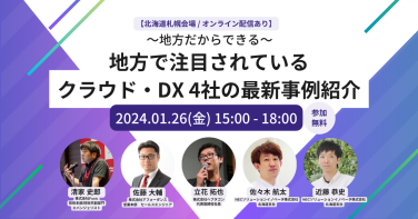 セミナー 【ハイブリッド開催】地方で注目されているクラウド・DX4社の事例紹介〜地方だからできる〜 #内製化#AWS#クラウド 開催日時 2024.1.26 15:00 〜 18:00 無料 NECソリューションイノベータ株式会社 北海道支社 受付終了