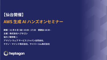 ハンズオンセミナー 【仙台開催・満員御礼】 AWS生成AIハンズオンセミナー #AWS#クラウド#生成系AI#生成AI 開催日時 2024.11.8 15:00 - 17:00 無料 仙台トラストタワー (宮城県仙台市青葉区一番町1丁目9-1) 受付終了