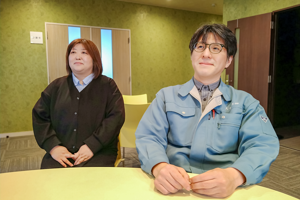 大青工業株式会社 技術本部 IoT 主任 米塚 明夫さま (画像右) と総務担当スタッフ (画像左)